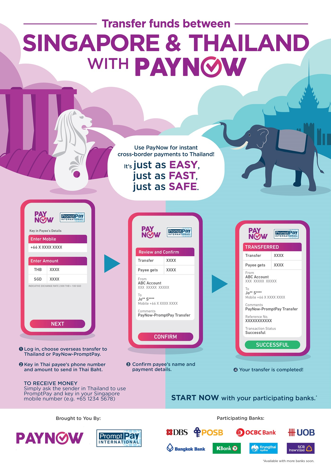 PayNow and PromptPay are real time P2P payment networks in Singapore and Thailand respectively. In a new partnership between the financial regulators between the two countries, folks can send money with limited hassle - just a mobile number; no additional KYC, with the ability to send SGD $1,000 or THB 25,000 daily at near-instant speeds. As both systems are part of government-syndicated payment initiatives, the capabilities for payouts and pay-ins are possible for all affiliated banks, so most major bank consumers can use this service. Three of Singapore’s 12 PayNow banks are participating in the scheme - DBS Bank, OCBC Bank and UOB - together with four banks in Thailand - Bangkok Bank, Kasikorn Bank, Krung Thai Bank and Siam Commercial Bank.